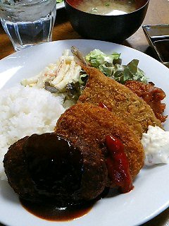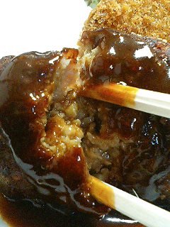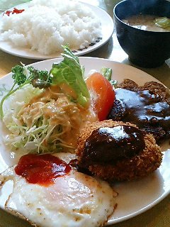 クリームコロッケとハンバーグと目玉のトリオ